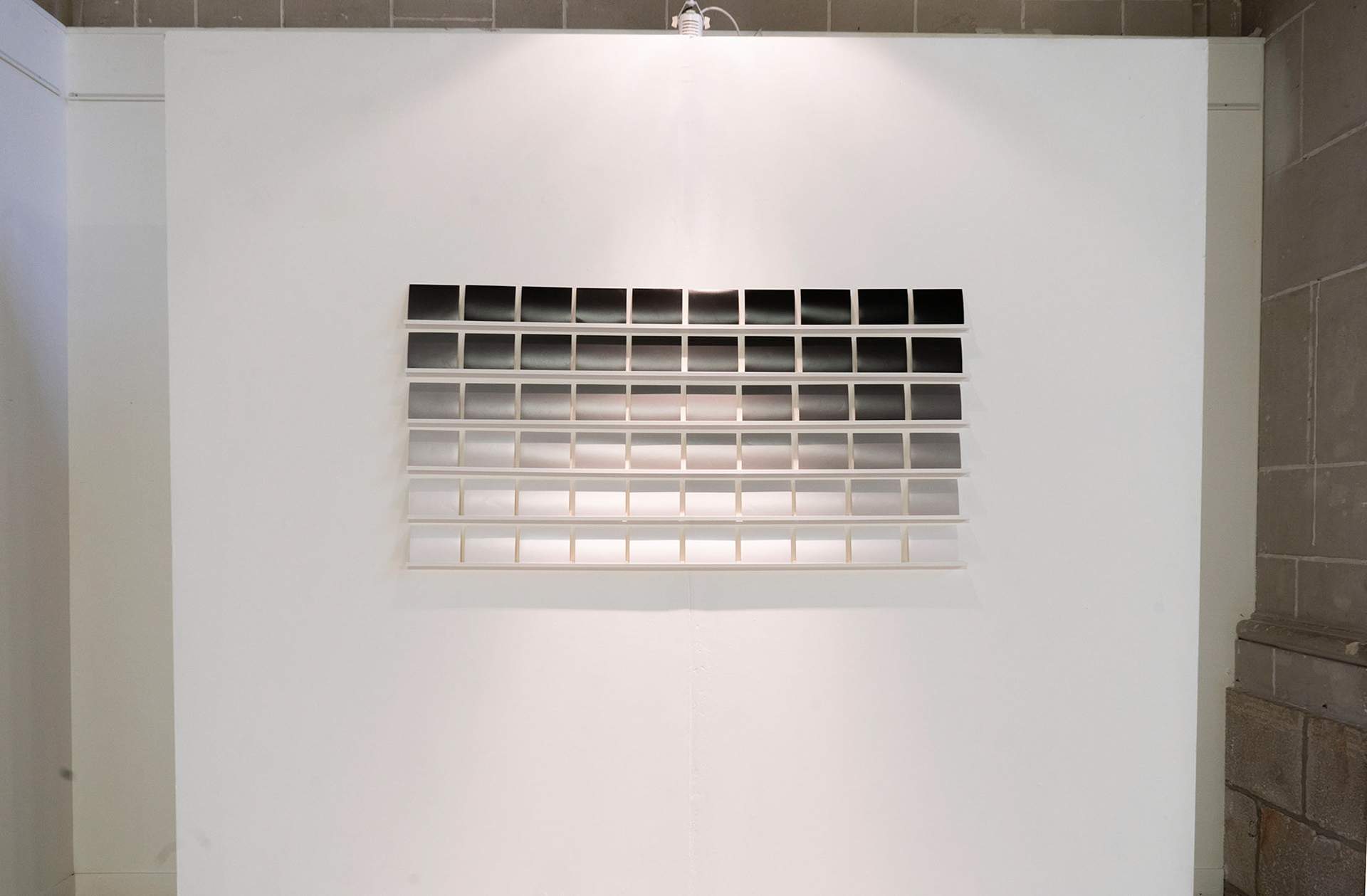 Ce projet explore l’essence de la matérialité photographique en étudiant les variables fondamentales du tirage argentique : l’ouverture de l’objectif et le temps d’exposition. Un tableau à double entrée, représentant chaque combinaison de ces paramètres, visualise et matérialise leur impact sur le rendu final de l’image. L’approche combine photographie et protocoles scientifiques, créant un espace d’expérimentation où le dégradé révèle les variations de lumière et de contraste. Le spectateur est invité à percevoir des nuances invisibles et à considérer la photographie comme une matière plastique, au-delà de sa simple fonction de représentation. Cette série prolonge les recherches sur la matérialité du médium et la constitution de l’image, transformant le projet en une cartographie photographique, une visualisation de la « respiration » de l’image à travers les réglages techniques.